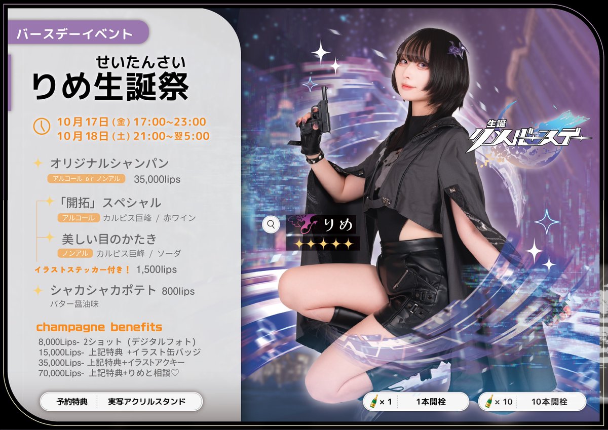 🧡 りめ生誕祭 🧡 🗓️10月17日(金) 17:00-23:00 🗓️10月18日(土) 21:00-翌5:00 ✨オリジナルシャンパン <アルコール or ノンアル> 35,000lips ✨「開拓」スペ […]