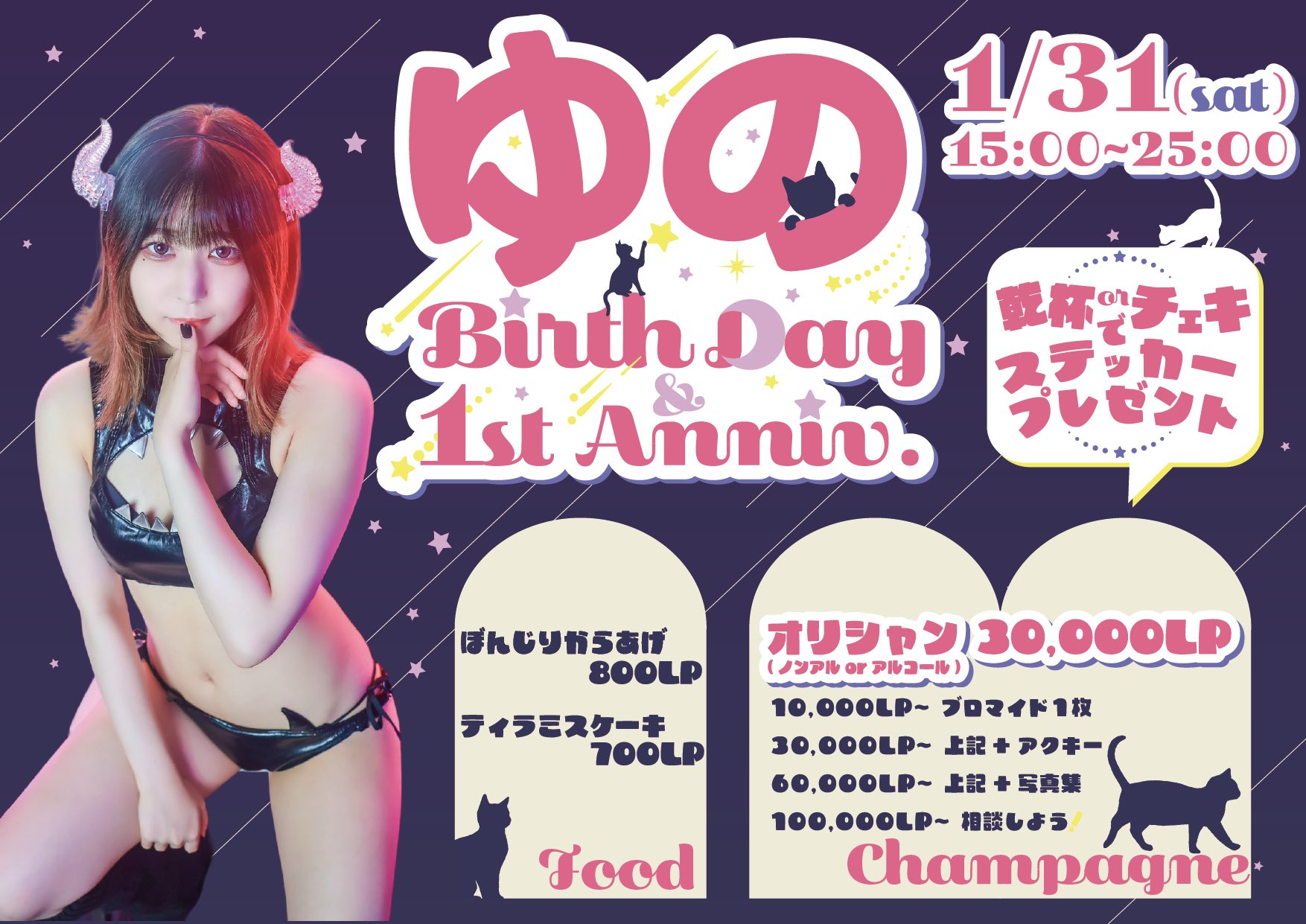 ✦ ゆの BirthDay & 1st Anniv ✦ 🗓️ 1月31日(土) 15:00 〜 25:00 Food ぼんじりからあげ 800 LP ティラミスケーキ 700 LP Champagne オリシ […]