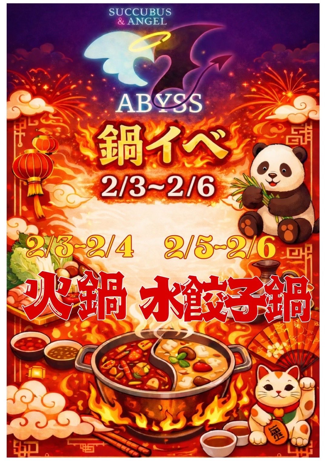 【サキュバスシーシャ ABSYS】2/3(火)~2/6(木)鍋イベント🍲