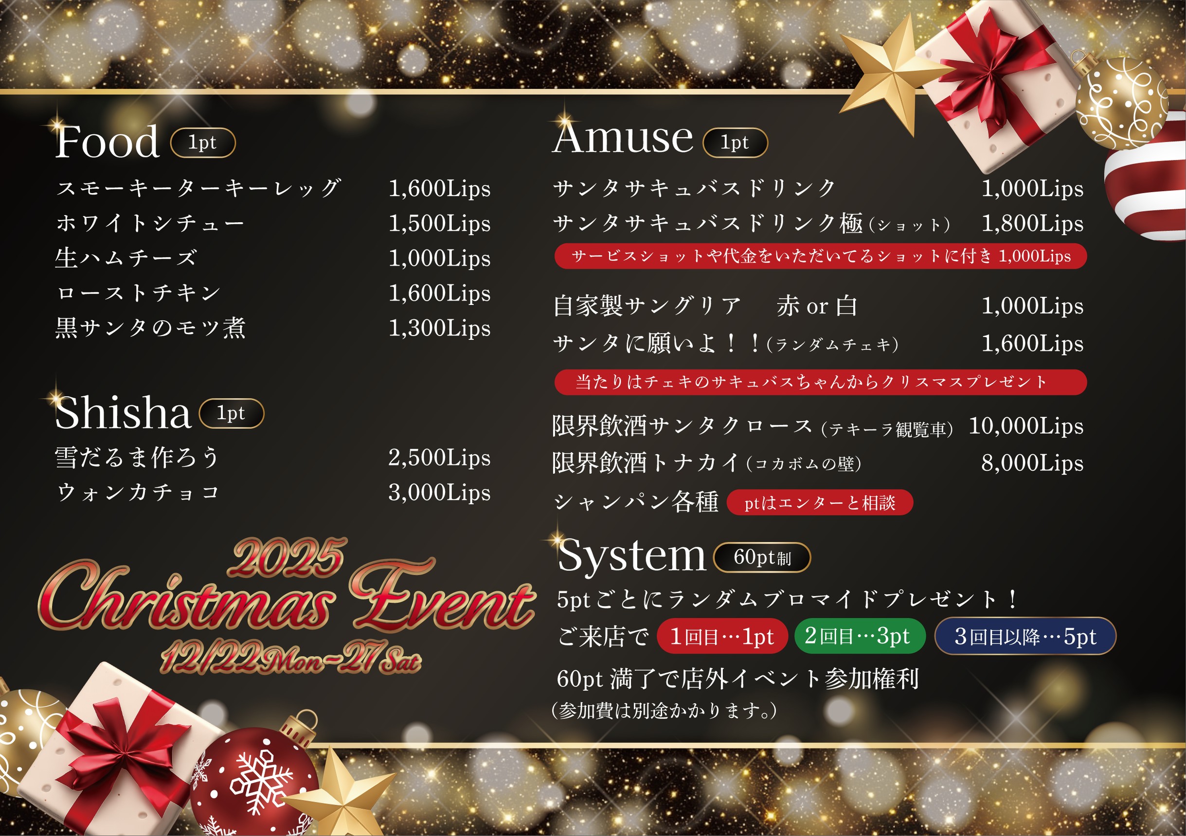 【サキュバスシーシャ KISS】12/24(水)~12/27(土) クリスマスEV🎁