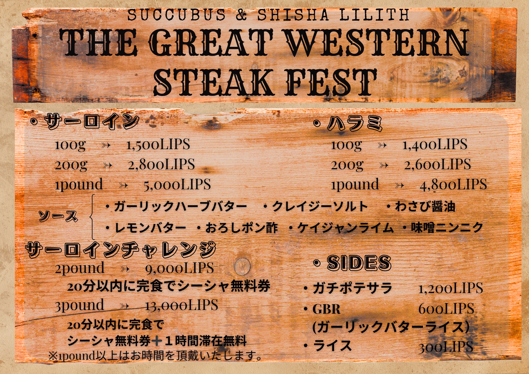 【サキュバスシーシャ LILITH】10/17(金)-10/18(土) THE GREAT WESTERN STEAK FEST