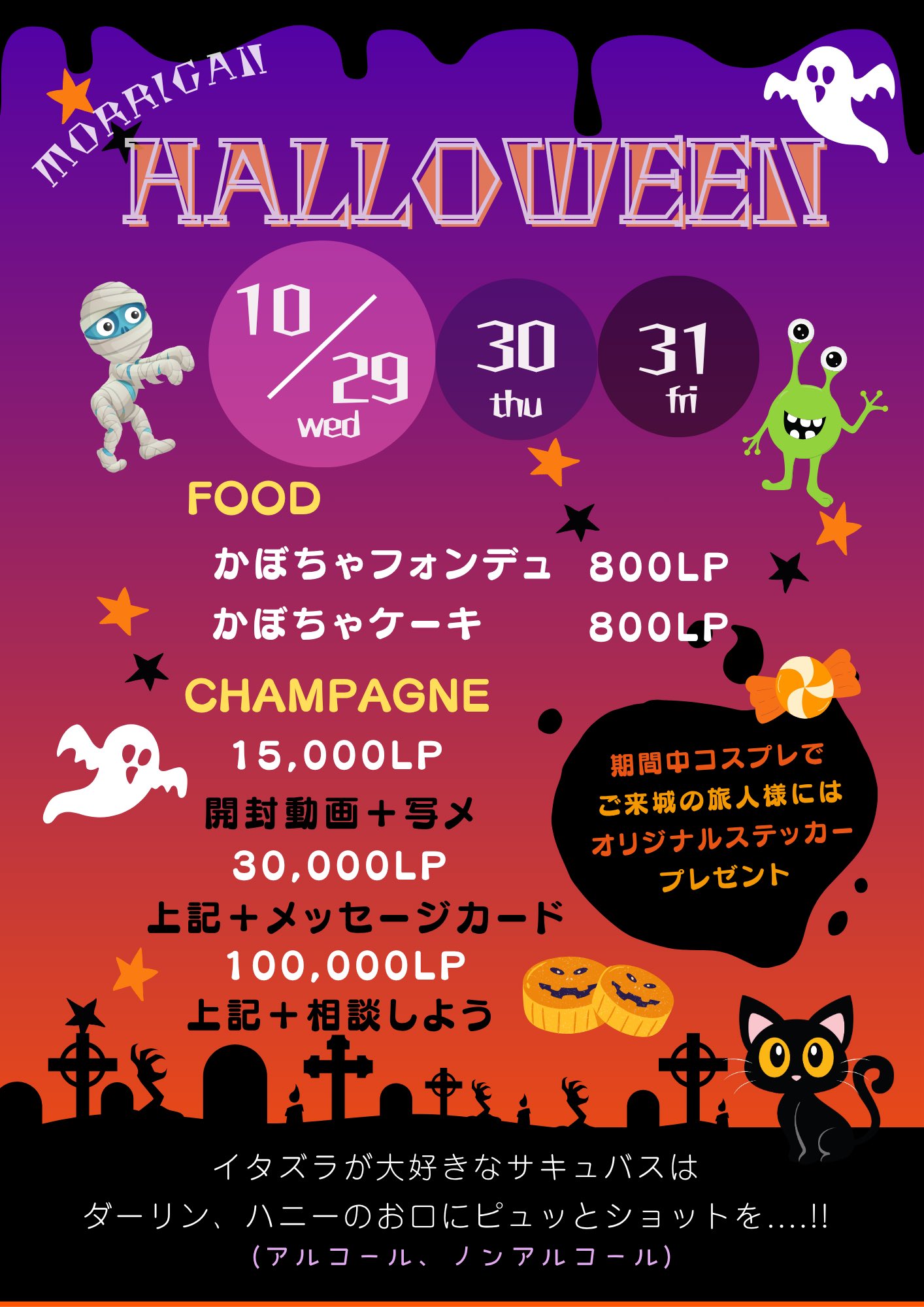 【サキュバスシーシャMORRIGAN】10/29(水)-10/31(金) ハロウィンイベント🧛