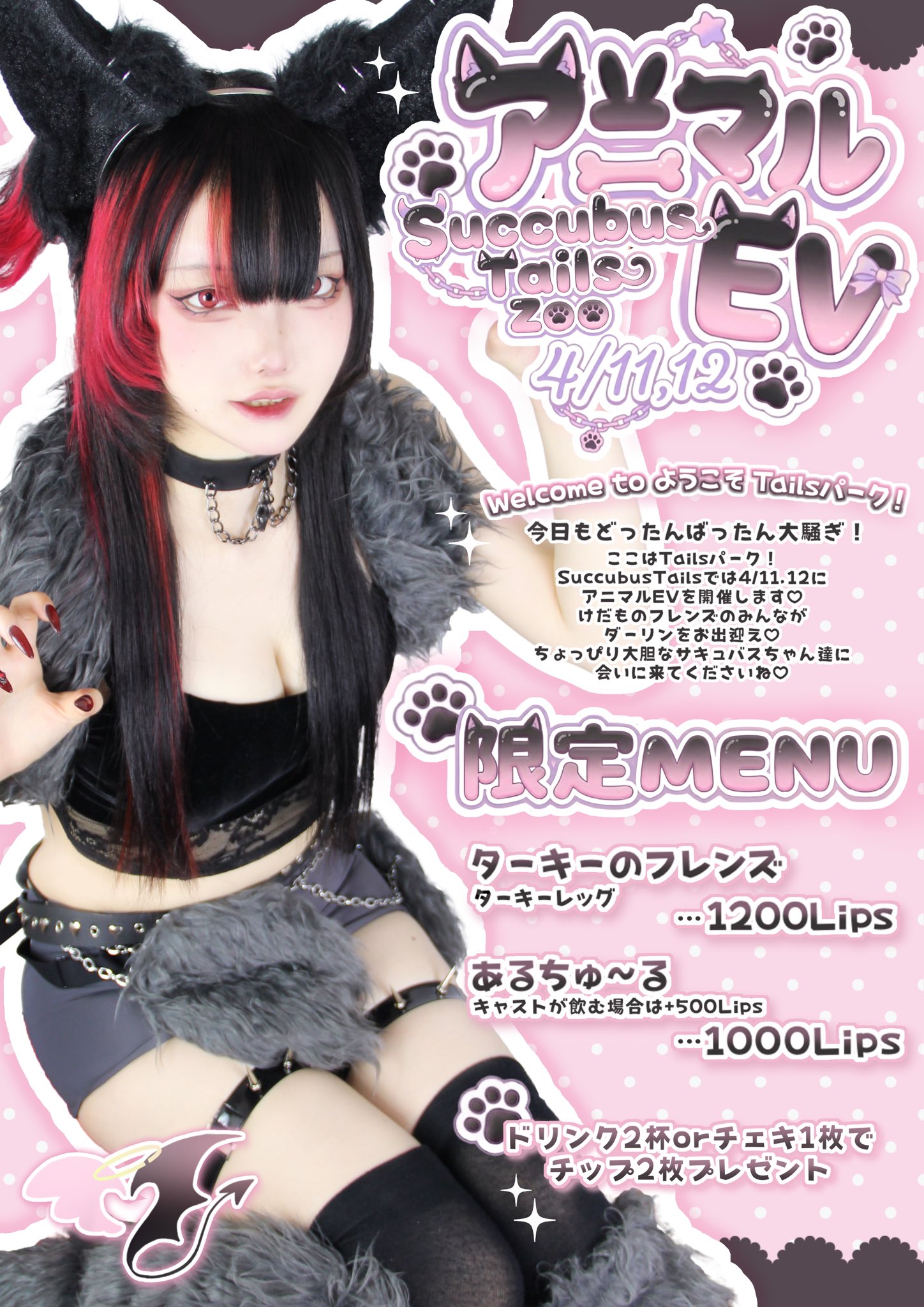 【サキュバスシーシャ TAILS】 4/11(土)~4/12(日) アニマルイベント🐾