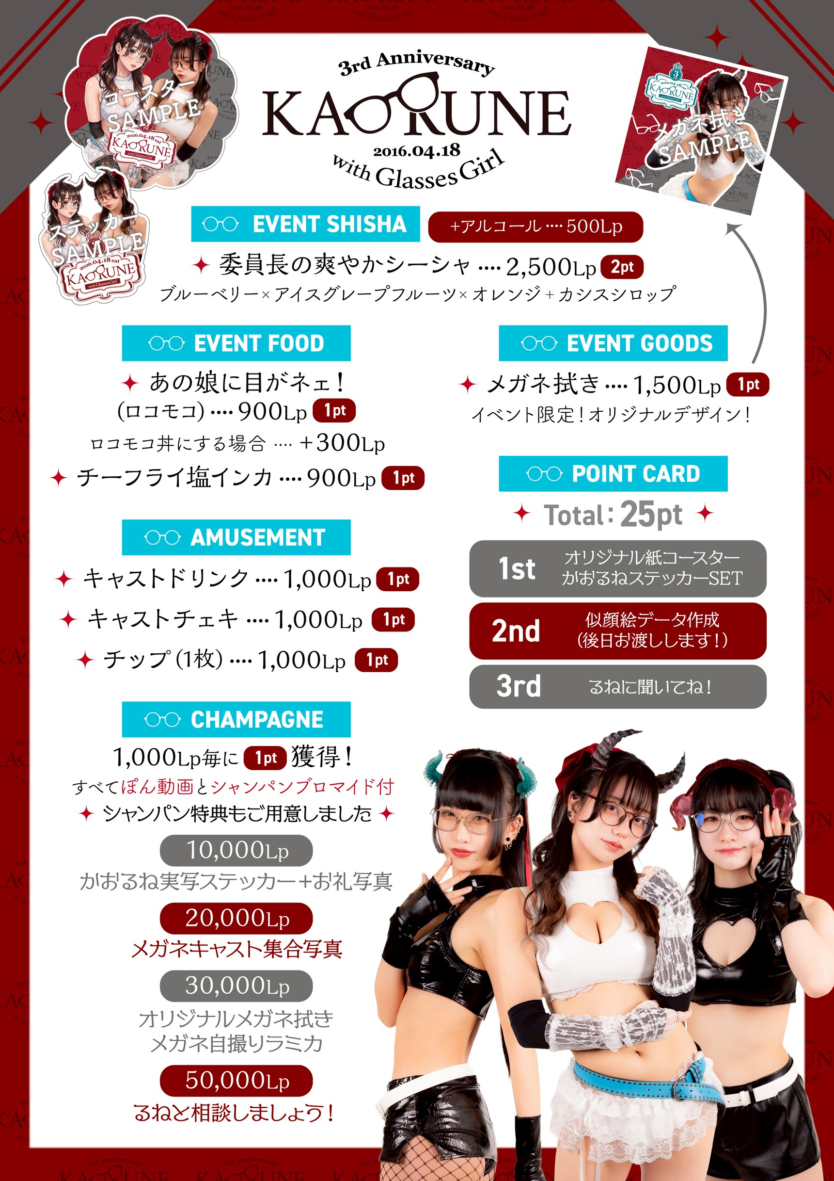 【サキュバスシーシャ WINGS】4/18(土) KAORUNE 3rd Anniversary👓