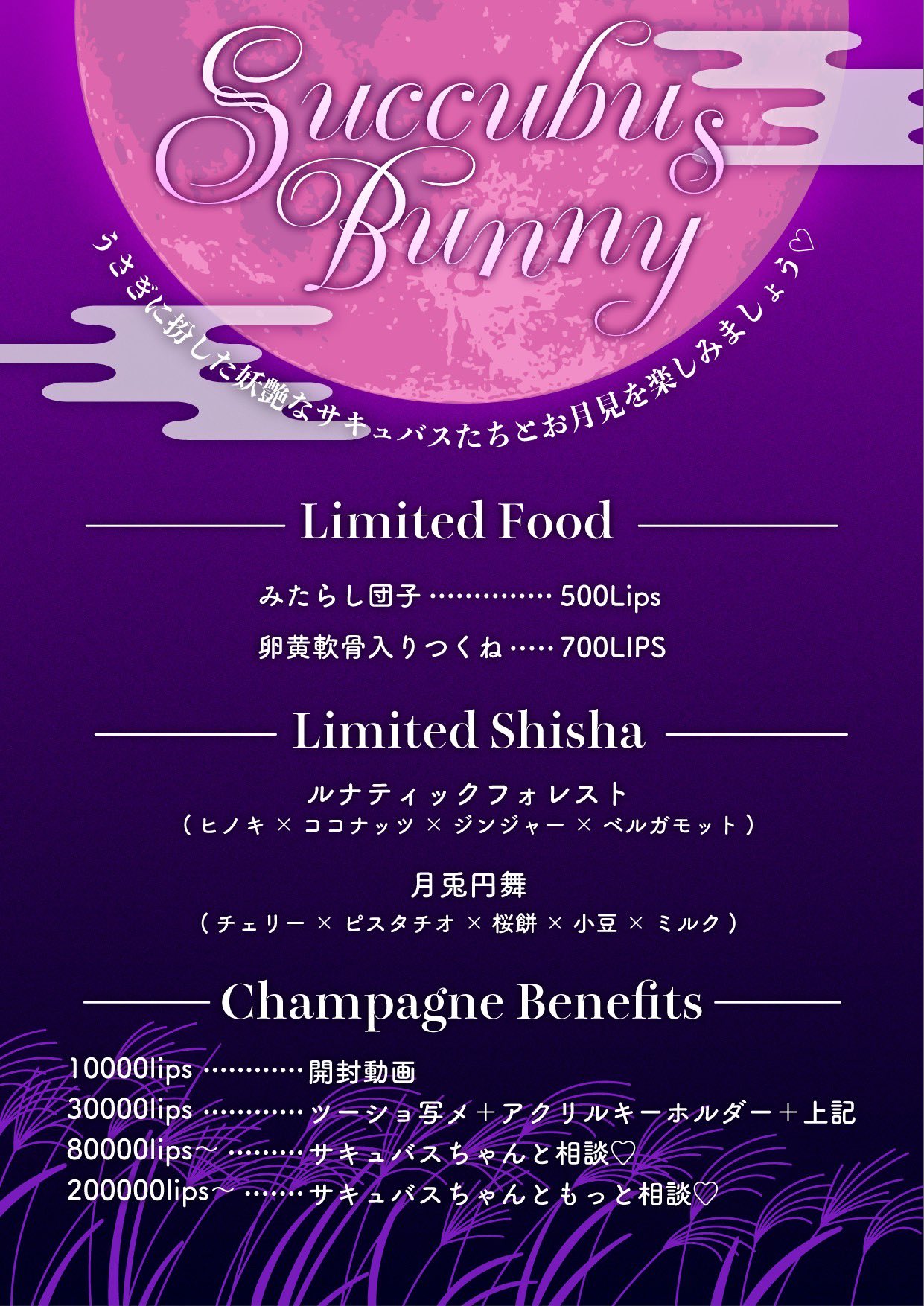 ー Succubus Bunny ー うさぎに扮した妖艶なサキュバスたちとお月見を楽しみましょう♡ 🗓️9/26(金)-9/27(土) 🐇Limited Food ♡みたらし団子 500Lips ♡卵黄軟骨入りつくね 7 […]
