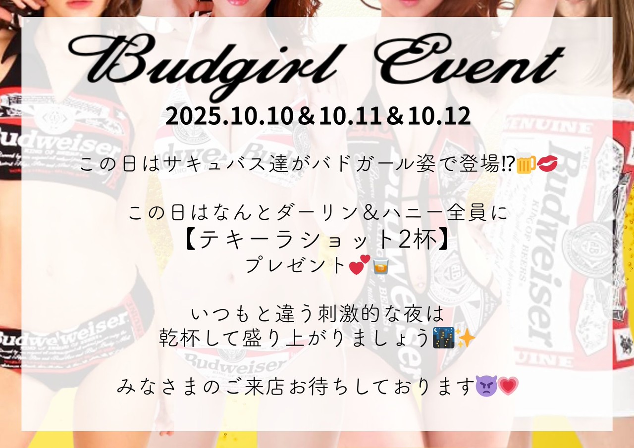 この日はサキュバス達が バドガール姿で登場!? この日はなんとダーリン&ハニー全員に 【テキーラショット2杯】 プレゼント🥃❤️ いつもと違う刺激的な夜は 乾杯して盛り上がりましょう🌙✨ みなさまのご来店を心より […]