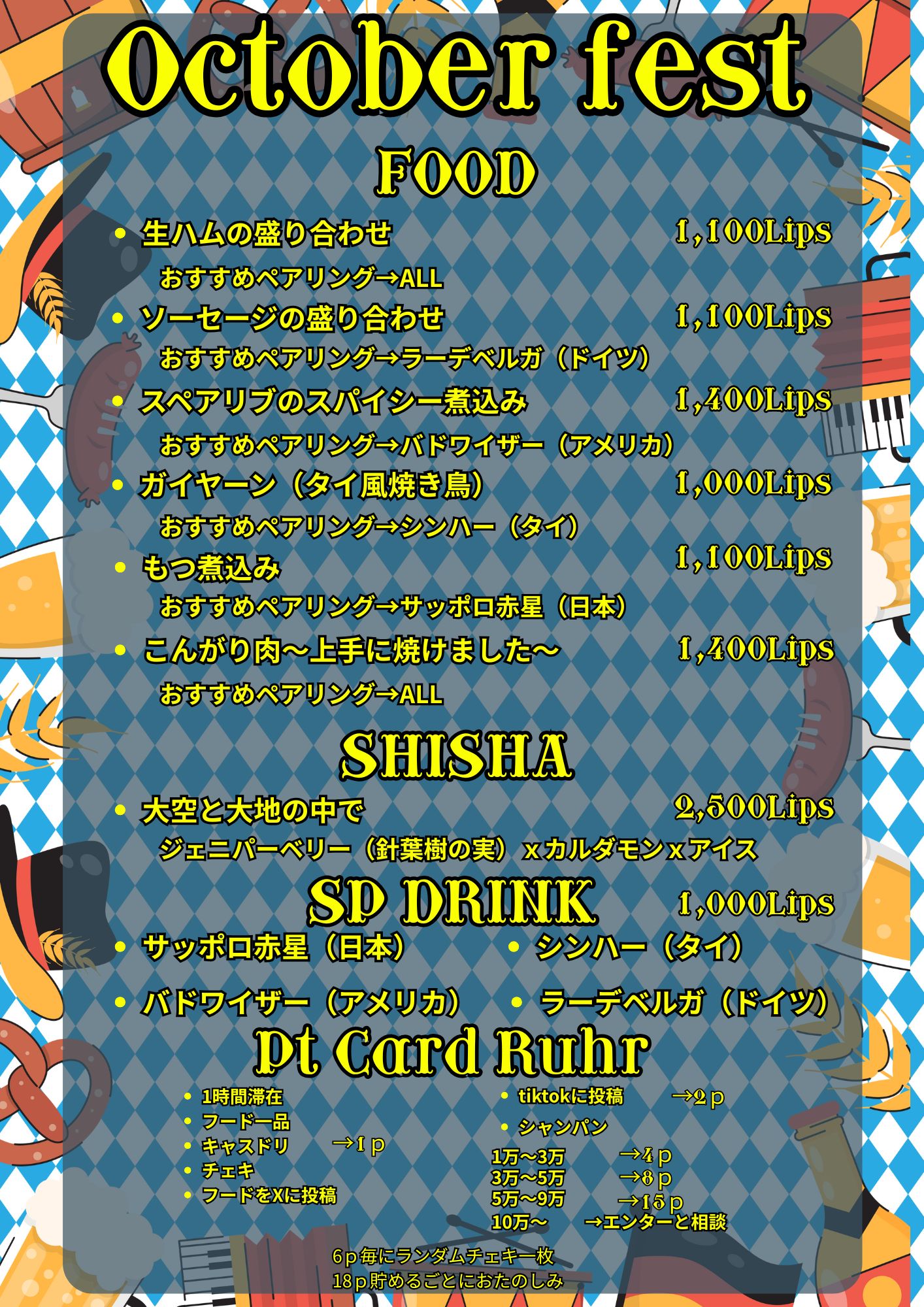 🗓️10/10(金) 17:00-25:00  10/11(土) 17:00~25:00 👁️限定フード モッツアレラチーズスティック 800Lp 粗挽き肉焼売 900Lp 👁️オリジナルシャンパン 30,000Lp い […]